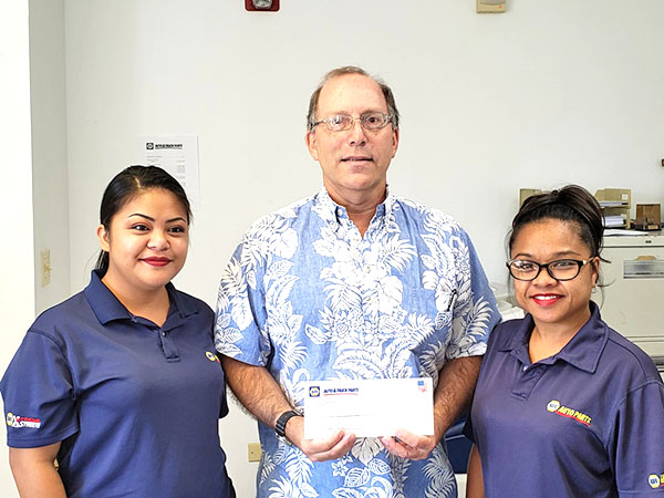 NAPA Auto & Truck Parts Saipan general manager Nani V. Vallabhaneni and his staff recently presented a $15,000 donation to the American Red Cross-NMI Chapter and a $5,000 gift to Commonwealth Advocates for Recovery Efforts.
