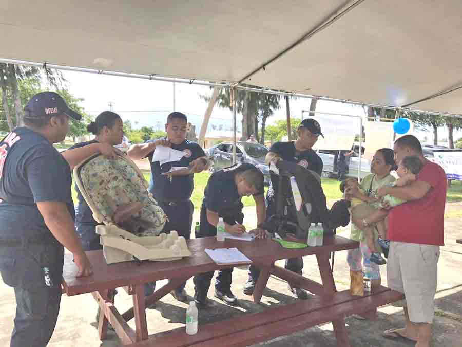 Commonwealth first responders conduct car seat checks during the National Car Seat Check and Family Fun Day last Saturday at the Susupe Civic Center. (Donna Liwag)