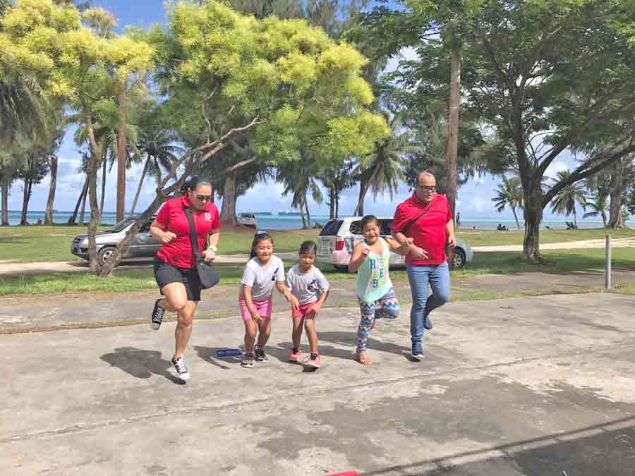 Staff of the Public School System’s Early Head Start Program encourages children to get active during the National Car Seat Check and Family Fun Day last Saturday at the Susupe Civic Center. (Donna Liwag)