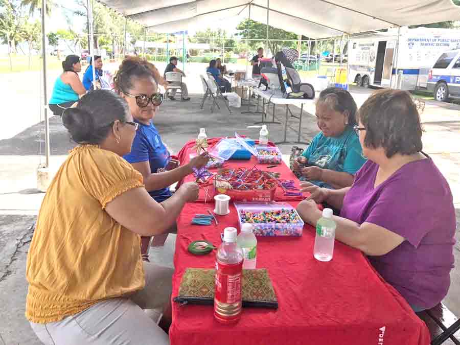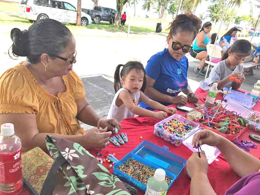 Volunteers assist the children in handicraft activities at the National Car Seat Check and Family Fun Day last Saturday at the Susupe Civic Center. (Donna Liwag)