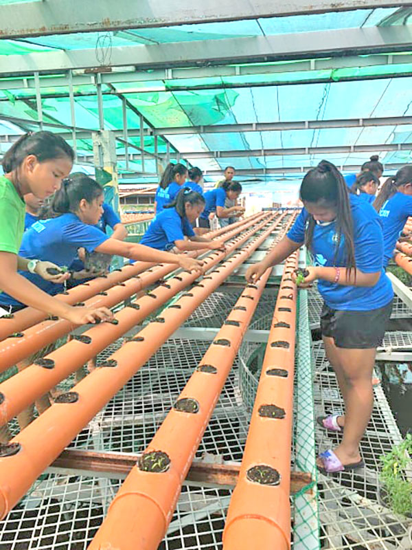 Members of the CNMI women’s U19 and U15 national teams enjoy doing aquaponics during a community service at Tuloy Foundation in the Philippines where they are having a training camp in preparation for the 2019 Marianas Cup. (Contributed Photo)
