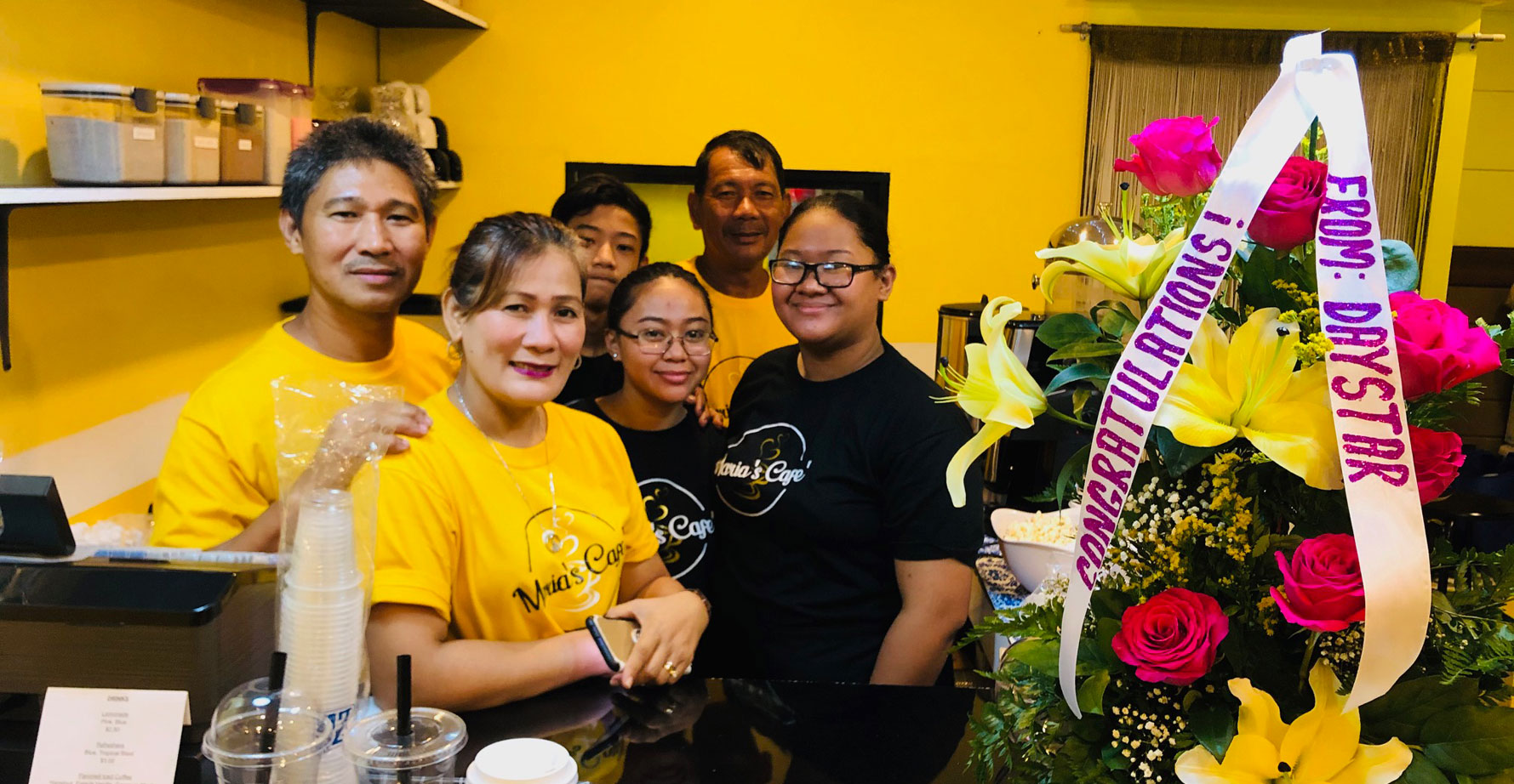Maria Lowedeth Lumauag, right, poses with family during the grand opening of Maria’s Café last Saturday.