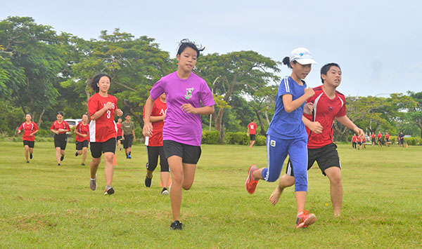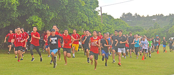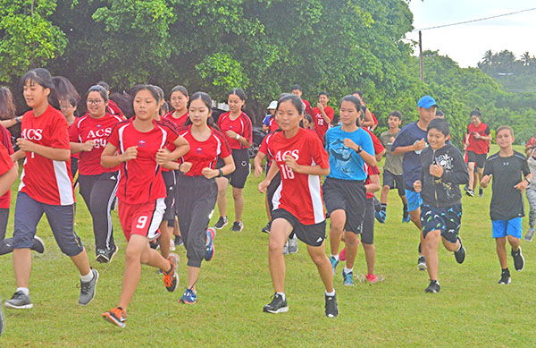 Middle and high school students are bunched up at the start of the Northern Marianas Athletics Cross Country Series 1 held last Sept. 8 at the CPA Airport Field.