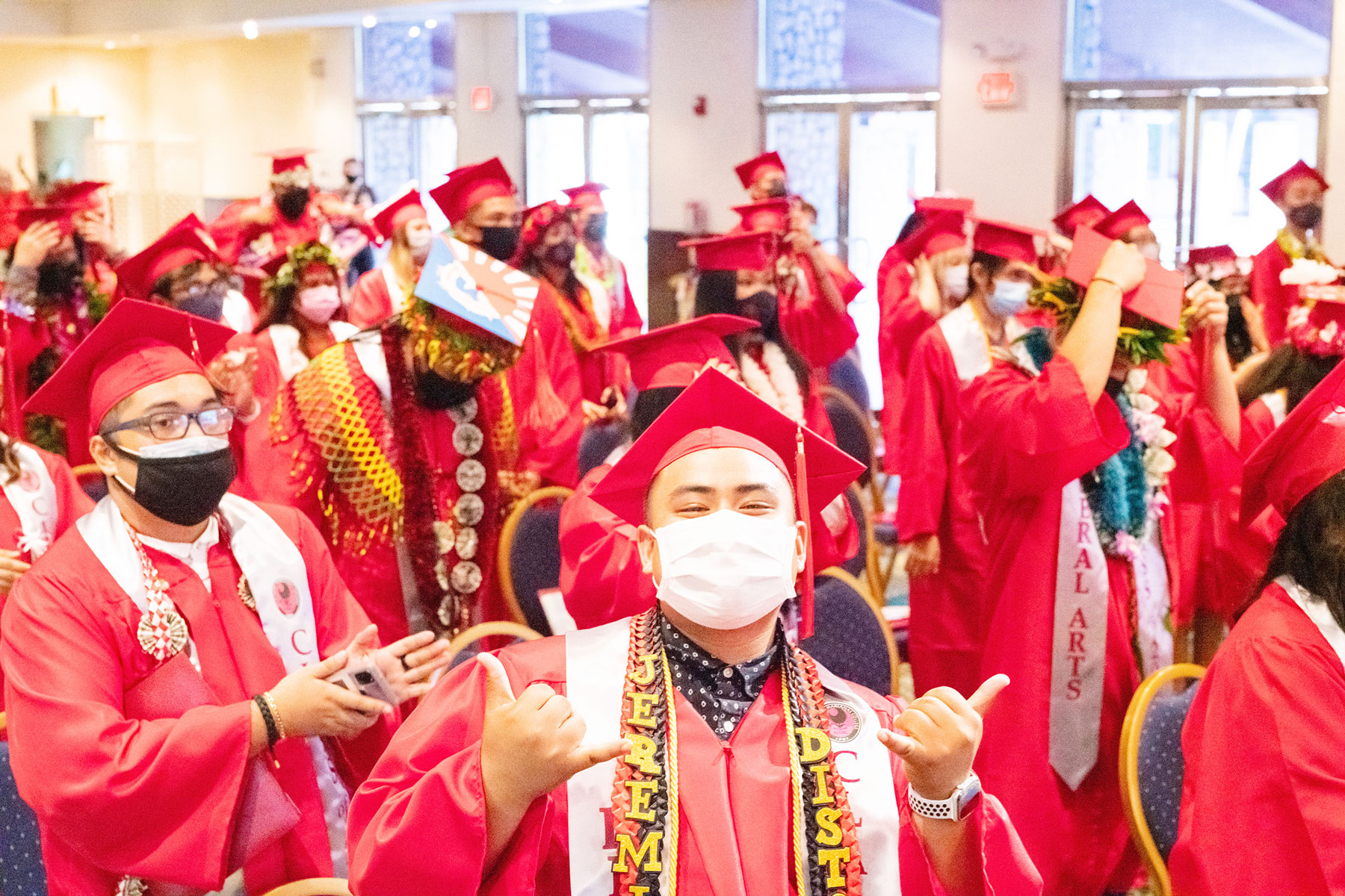 Criminal Justice graduates at Crowne Plaza. NMC’s commencement exercise also included the conferral of bachelor degrees for University of Guam students who were enrolled in the criminal justice program through a partnership between NMC and UOG. (NMC)