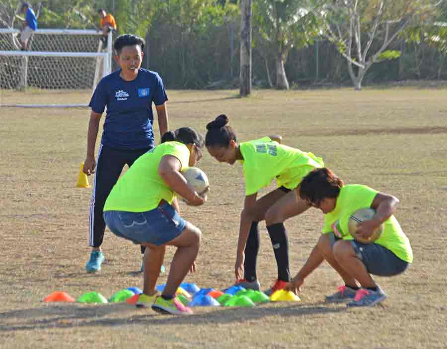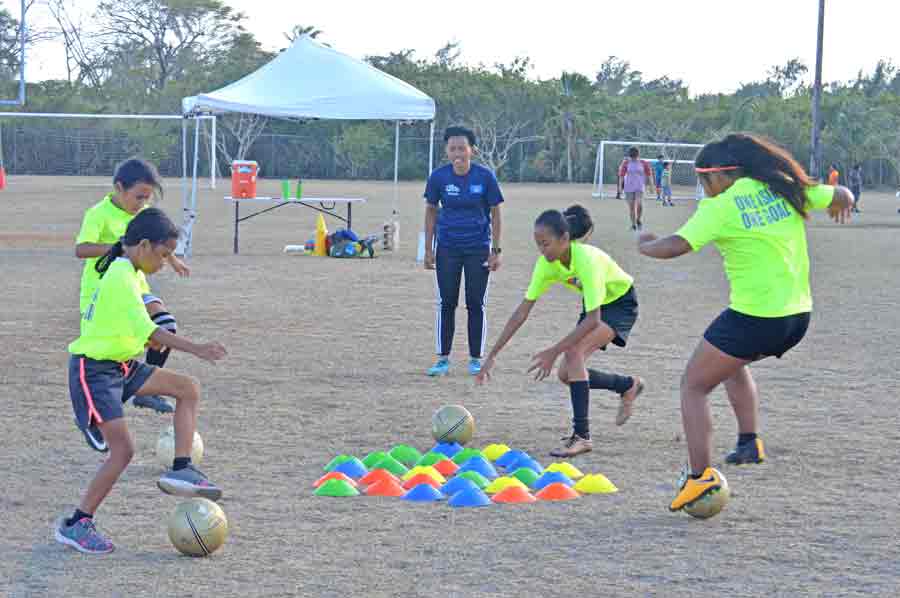 Members of the CNMI Women’s National Team training pool facilitated the activities, which included obstacle course, football drills, and scrimmages.