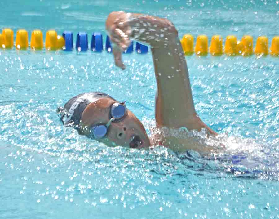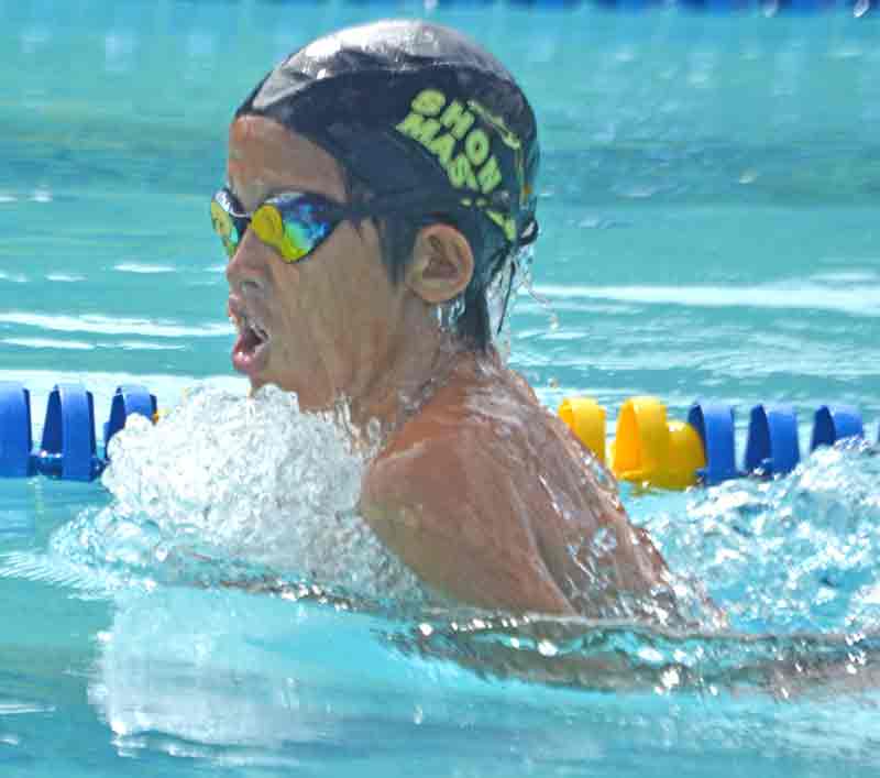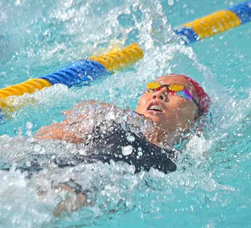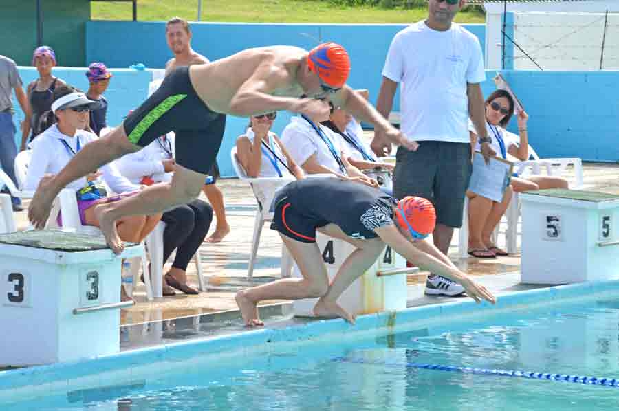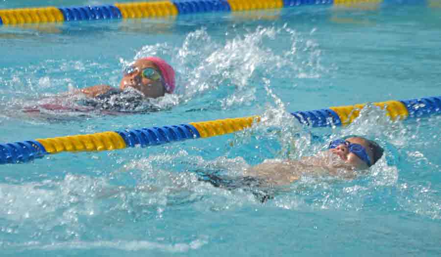 Two swimmers compete in the 50m backstroke event during the Northern Mariana Islands Swimming Federation Opening Meet held last Oct. 7 at the Kan Pacific Swimming Pool.