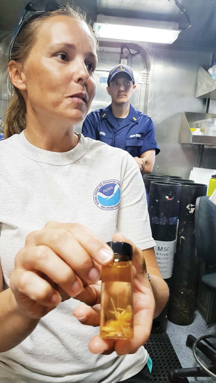 The ship is self-sufficient. It houses the crew and scientists in comfortable bunks, a mess hall that manages to house 50 people, laboratories, a pressurized chamber called the hyperbaric chamber. “We operate in some remote places in the Pacific so we are our own emergency notification system. We have a public health service medical officer, hospital, 911, firefighters.” Efird added.