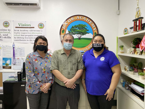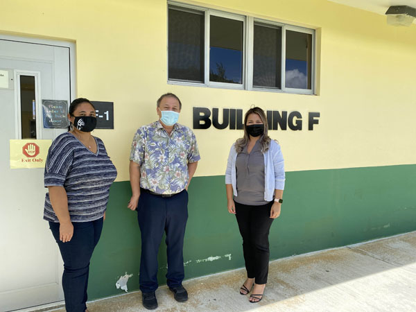 CNMI Board of Education chair Andrew L. Andrew L. Orsini poses with Francisco Middle School principal Cherlyn Cabrera-Osung and vice principal Carla Sablan.