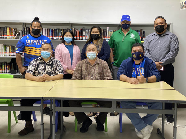 Education Commissioner Dr. Alfred B. Ada, CNMI Board of Education chair Andrew L. Orsini and associate commissioner for Administrative Services Eric Magofna pose with the Hopwood Middle School leadership team: principal Victor Borja, vice principals Ben Seman and Karen Manuel, librarian Janet Sablan and PSS Facilities Development and Management coordinator Glenn Smith.
