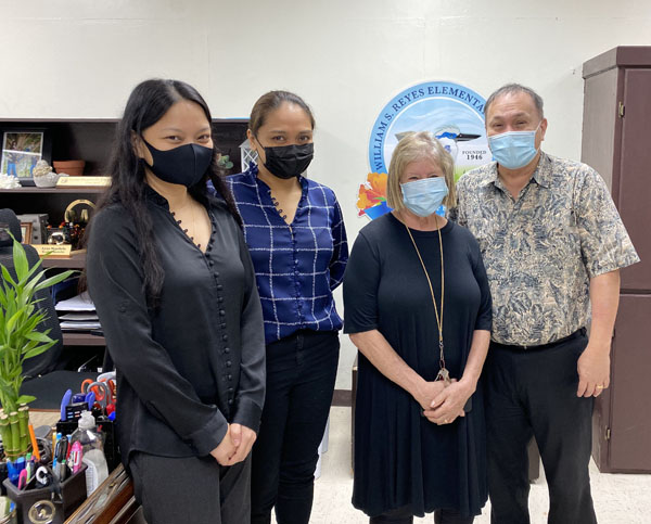 CNMI Board of Education chair Andrew L. Andrew L. Andrew L. Orsini, right, joins the William S. Reyes Elementary School leadership team: principal Lynn Mendiola, vice principal Jocelyn Manibusan, and BOE teacher representative Phyllis Ain.