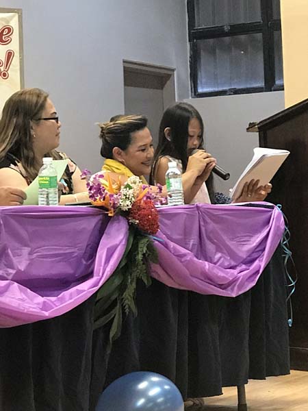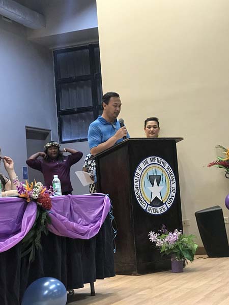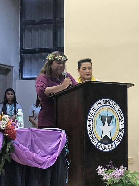 Emmanuel T. Erediano’s daughter introduces him at the proclamation signing for Parent Leadership Month last Jan. 31 at the Kagman Community Center to read the english version of the proclamation. Erediano later read the English version of the proclamation.
