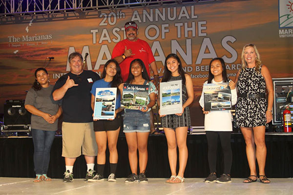 The Marianas Visitors Authority and Marianas Tourism Education Council award student winners of the 2018 Tourism Month “See My Marianas” Graphic Arts Design Contest on May 26, 2018, at the Taste of the Marianas International Food Festival & Beer Garden. From left to right are MVA Community Projects specialist Demalyn Pagarao, MTEC board member Glenn Policare, Deamarie Patio, Mary-Grace Caras, Angela Barbo, Chareena Layugan, and MTEC vice chair Wendi Herring. (MVA)