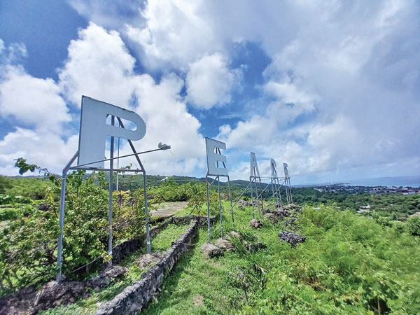 The “PEACE” sign on the top of the hill in Chinatown was vandalized over the weekend, with parts of the word covered in black plastic bags to bear a resemblance to a vulgar Chamorro term. Fortunately, a group of concerned citizens were immediately able to restore the sign upon learning of the incident.