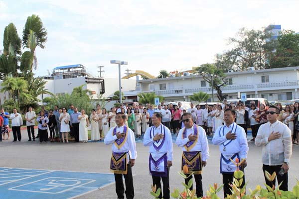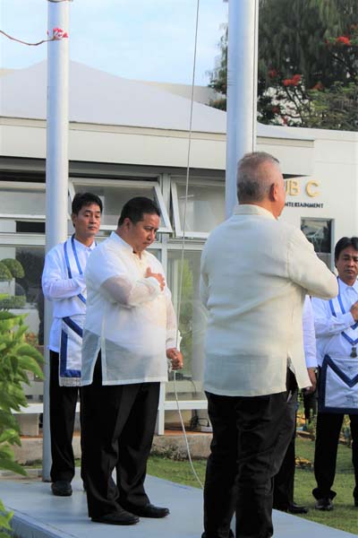 Members of Emon Lodge No. 179 Freemasons help raise the Philippine flag during the 120th Philippine Independence Day Flag-Raising ceremony last Tuesday at the Kanoa Resort.
