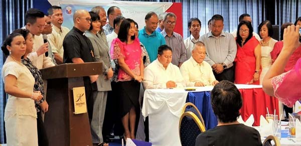 Gov. Ralph DLG Torres and Philippine honorary consul to the CNMI Glicerio Arago sign the CNMI-Philippine Friendship Month proclamation during the 120th Philippine Independence Day Flag-Raising ceremony last Tuesday at the Kanoa Resort.