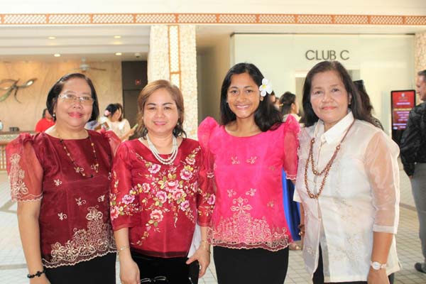 First lady Diann Torres, second from the right, poses in her traditional Filipino attire, called baro’t saya, with members of the Filipino community during the 120th Philippine Independence Day Flag-Raising ceremony last Tuesday at the Kanoa Resort.