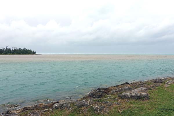 A car creates a splash as it makes its way past a patch of flooded road in Tanapag. (Iva Maurin)