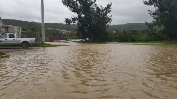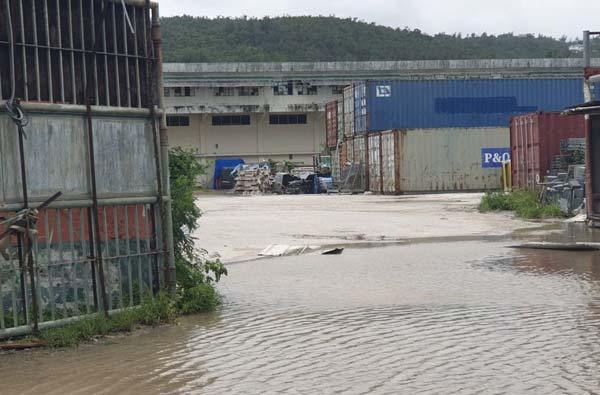 A stretch of the road across the Commonwealth Utilities Corp. Power Plant 1 is flooded in the wake of Super Typhoon Hagibis. (Kevin Calibo)