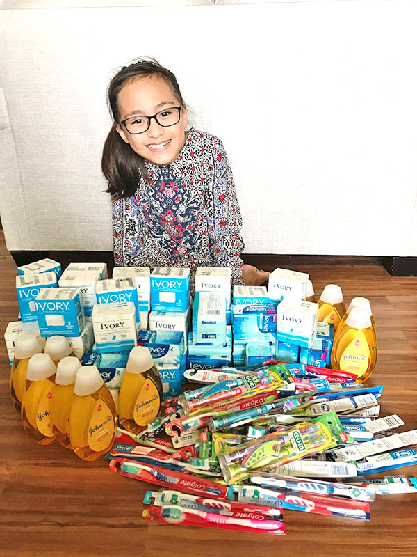 She bought hygiene supplies for the children at CNMI shelter. She is the daughter of Dirk and Monique Tenorio Magatas. (Contributed Photo)