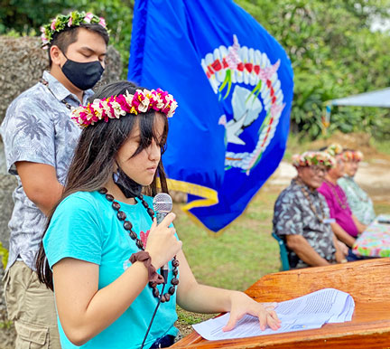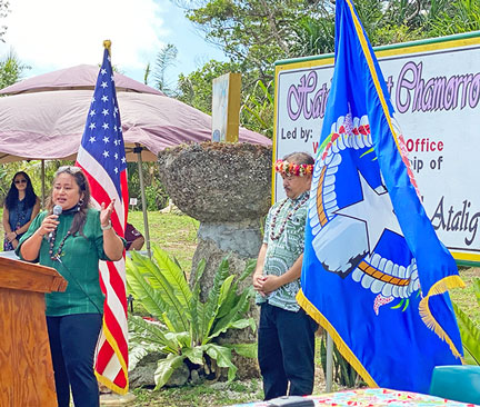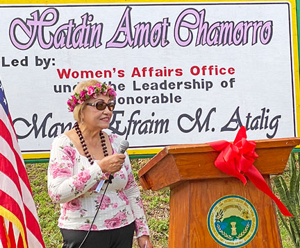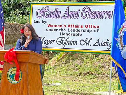 Aubry Hocog, special assistant for programs and grants at the Rota Mayor’s Office, expresses appreciation for everyone’s support in the hosting of Mental Health Proclamation and unveiling of the “Sagan Amot Chamorro” medicinal garden.