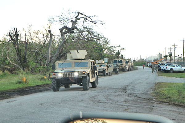 U.S. Army Reserve soldiers with the 9th Mission Support Command, currently assigned to Joint Task Group-Saipan, Task Force-West, prepare their military vehicles for daily mission assignments in support of Super Typhoon Yutu recovery efforts at the U.S. Army Reserve Center on Saipan last Nov. 16, 2018.