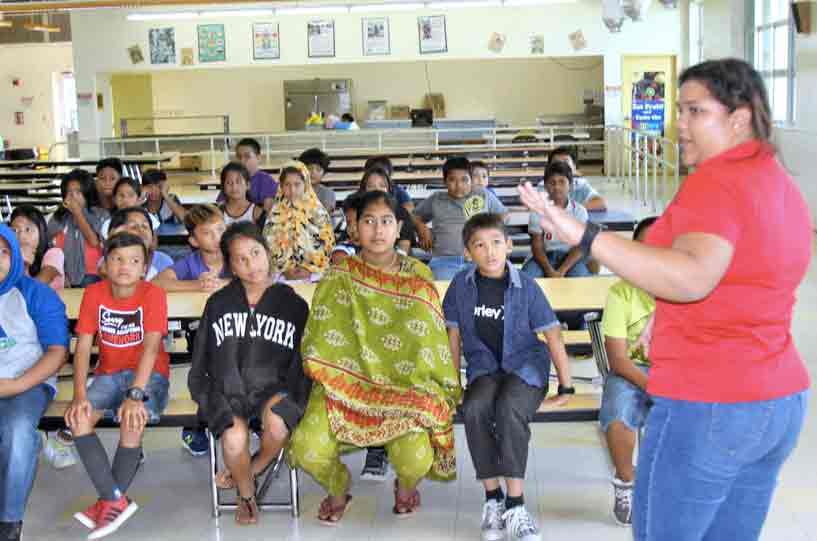 On Nov. 17, 2017, Marianas Visitors Authority Community Projects specialist Demalyn Pagarao teaches fifth graders at Sinapalo Elementary about the duties and activities of the tourism office. (MVA)
