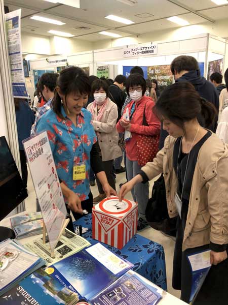 The Marianas Visitors Authority meets with divers and beach enthusiasts at the Marine Diving Fair on April 7, 2018, in Tokyo, Japan. The fair had over 50,000 attendees. (MVA)