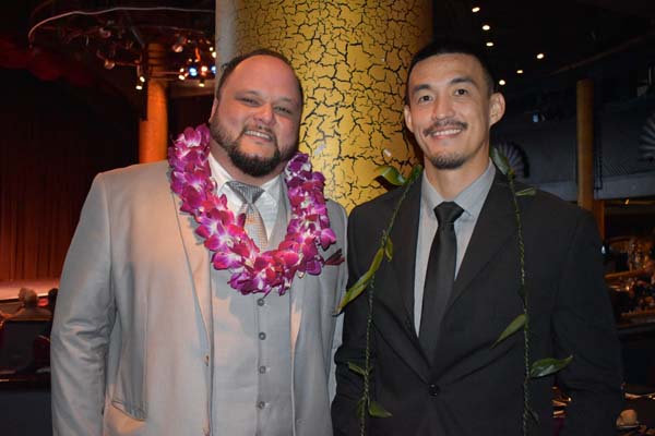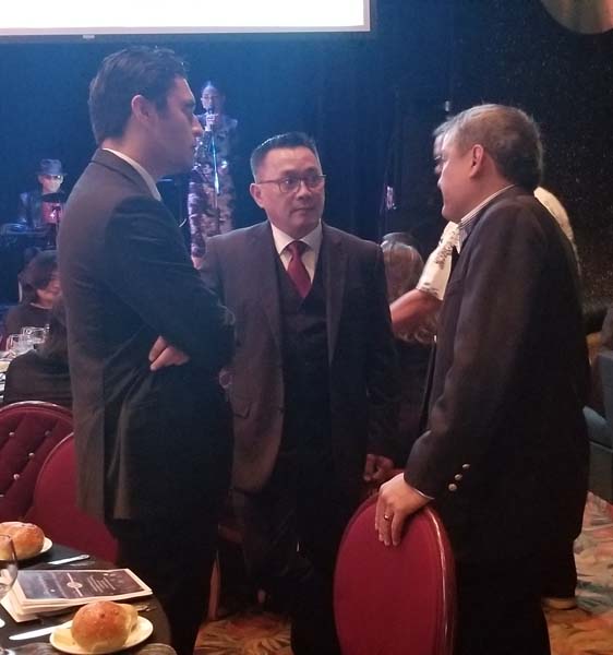 From left, former Office of the Governor chief of staff Matt Deleon Guerrero, Ivan Quichoho, and Alex Sablan enjoy a light conversation before the start of the program in last Saturday’s Saipan Chamber of Commerce Silver Lining Gala at the Hyatt Regency Ballroom of the Hyatt Regency Saipan. (PHOTOS By JON PEREZ)