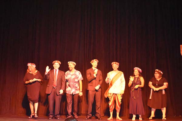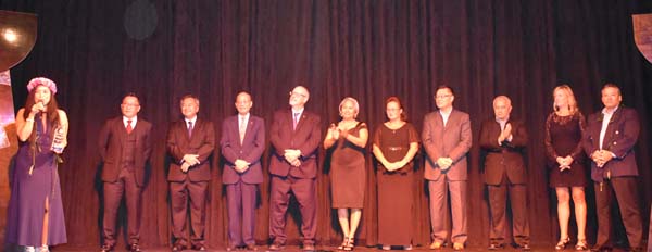 From left, Education Commissioner Glenn Muña with CNMI State Board of Education chair Janice Tenorio, IT&E CNMI general manager Rose Soledad, Chamber president Velma Palacios, and Taro Leaf’s Ulysses Sabuco.