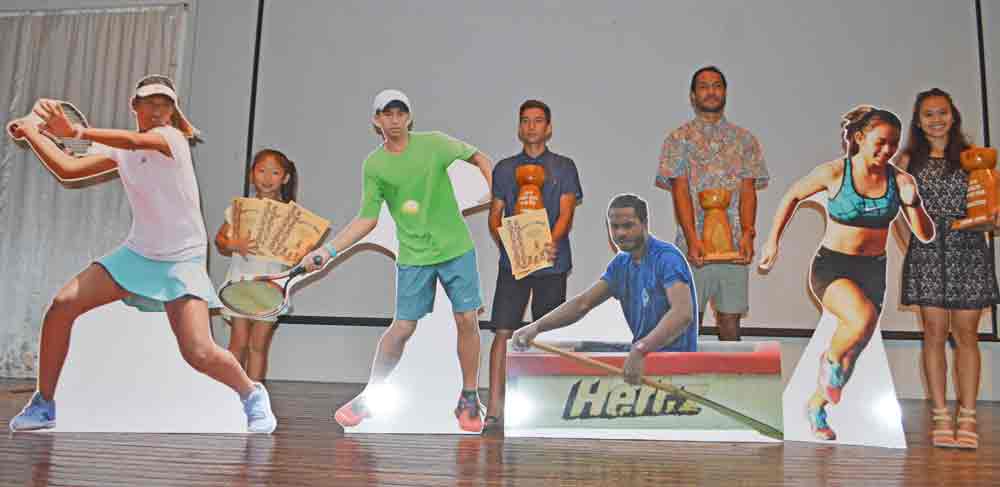 Tennis’ Carol Lee and Robbie Schorr, athletics’ Zarinae Sapong, and Marianas Outrigger Canoe’s Men’s Team’s received the major awards in the 2016 Northern Marianas Sports Association Annual Banquet held last night at the Hibiscus Hall of the Fiesta Resort & Spa Saipan for their outstanding performances in various competitions outside Saipan.