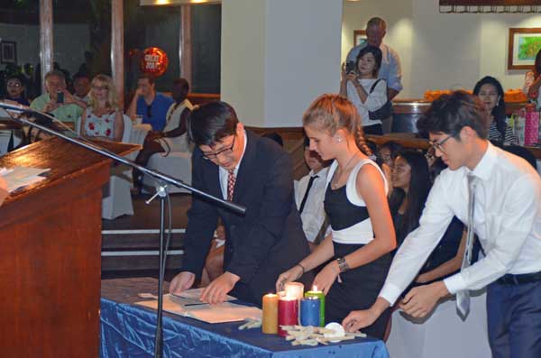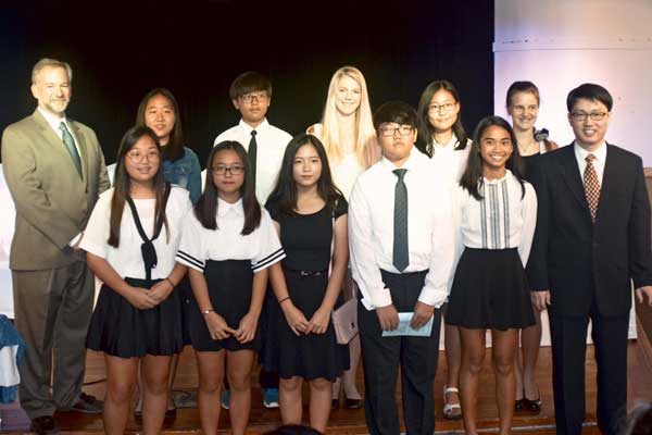 SIS headmaster Ron Snyder welcomed the guests and spoke briefly about the honor societies, while adviser Ingur Lee presented the candidates.
