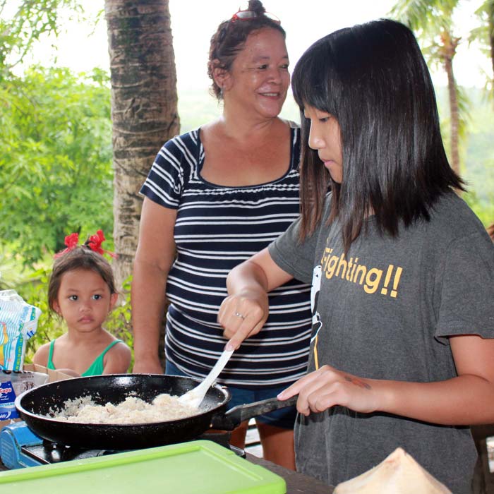 The students also visited historical and geographical sites on Saipan and had a great day at the Koconut-ville farm where they made mwars, cooked coconut candy, sampled fruits, and got to see some animals.