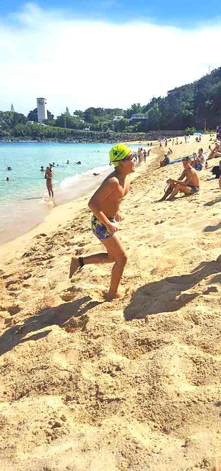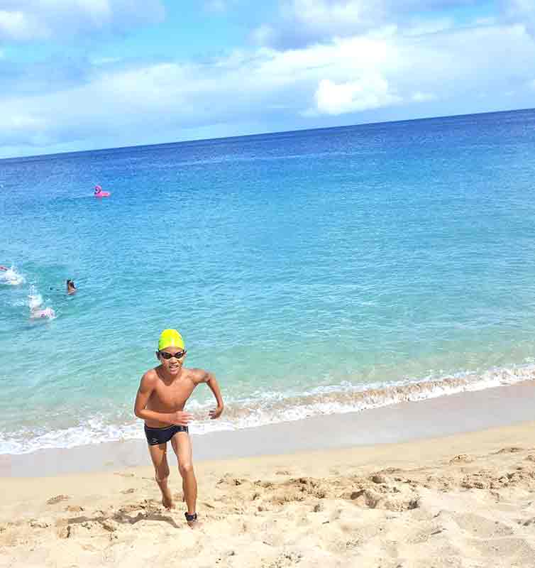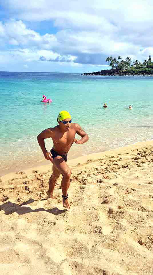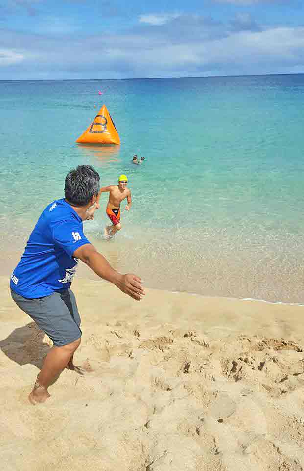 David Boyer runs to the finish line during last weekend’s North Shore Swim Series 3, a 1.8-mile swim from Jaco’s Chun to Waimea Bay in Oahu, Hawaii.