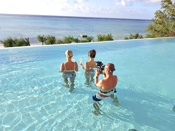 “Sweet Blue” of Japan’s CS-TV films at the Obyan Beach on March 27, 2019, for their annual diving destination feature program. The media familiarization tour was supported by the Marianas Visitors Authority. (MVA)