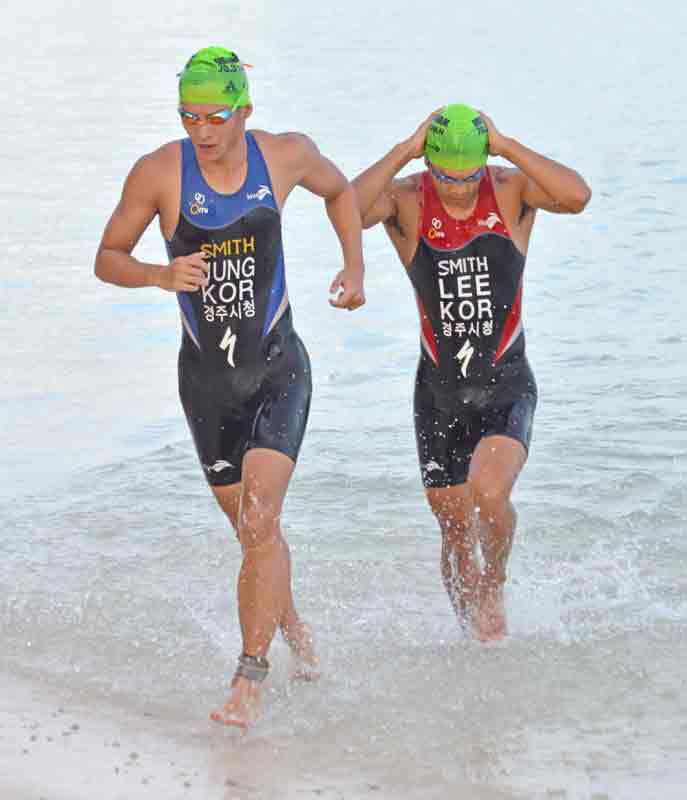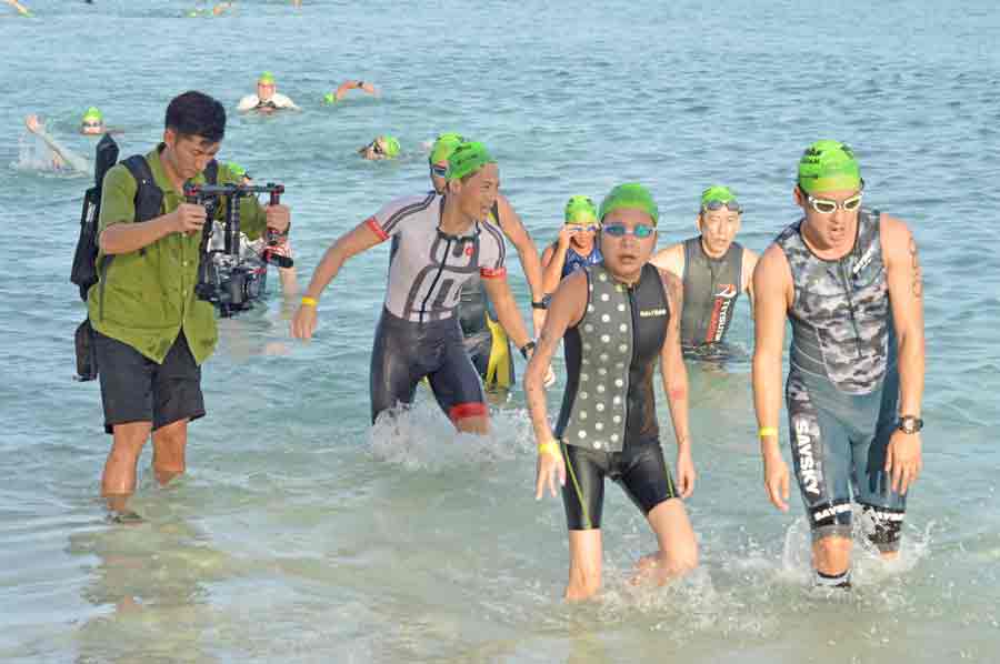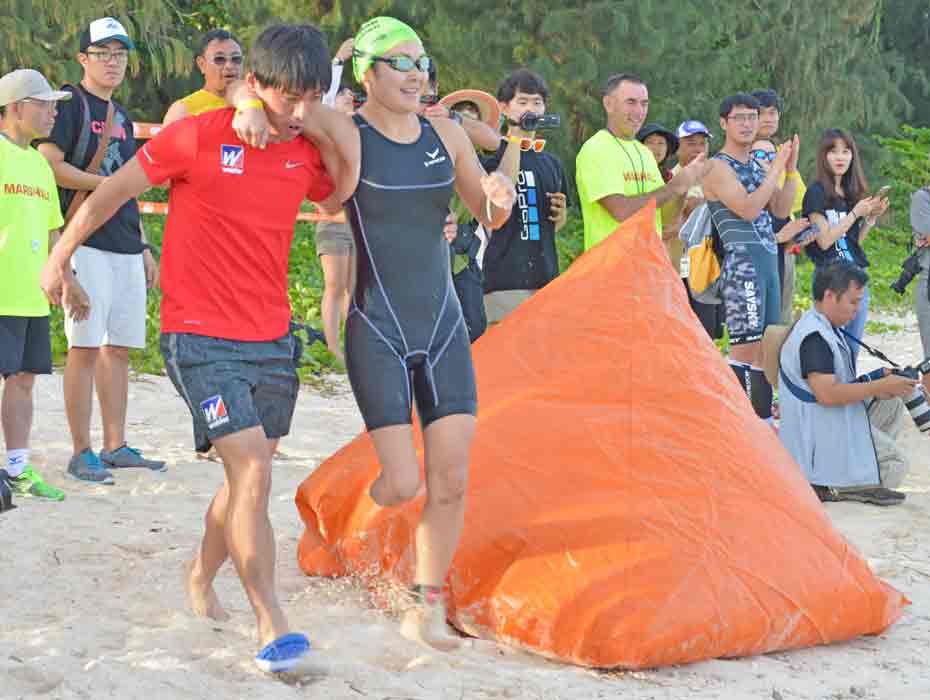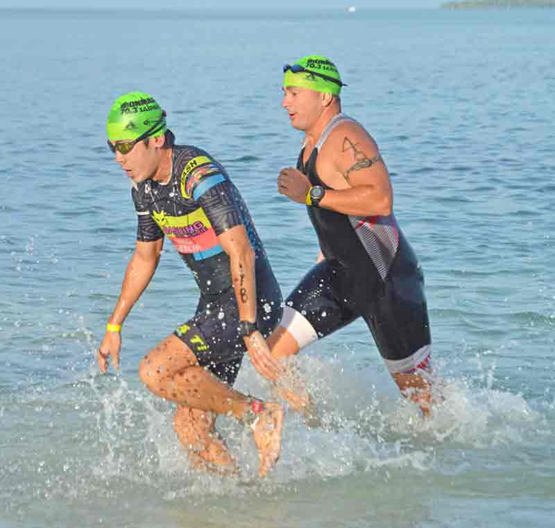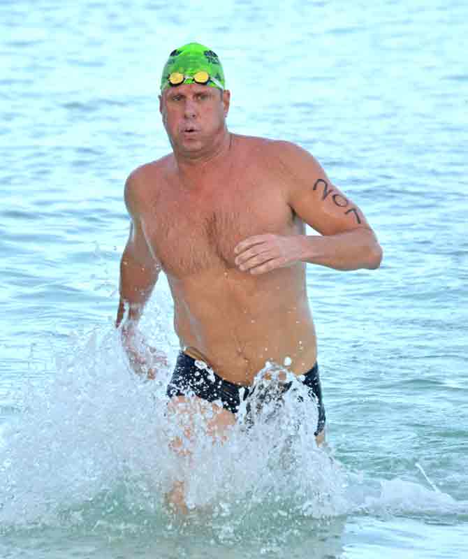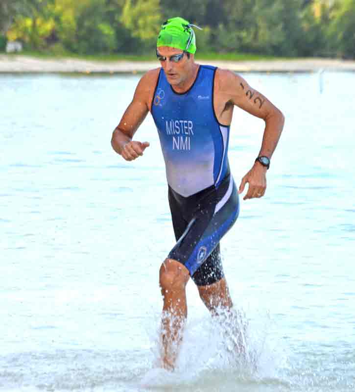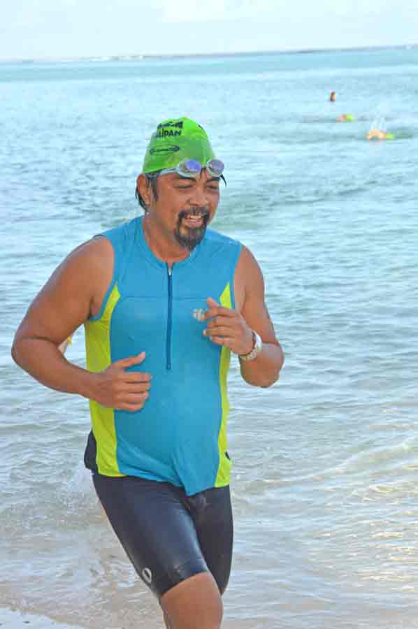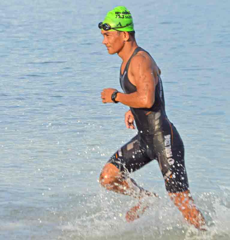 Tyce Mister heads to the shore for the second lap of the two-lap 1.9-kilometer swim leg in the Ironman 70.3 Saipan held in the waters off Pau Pau Beach last Saturday.