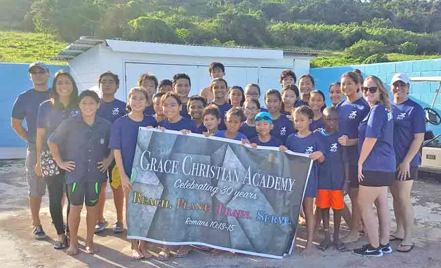 Grace Christian Academy received three plaques from Saipan Swim Club for reigning supreme in the 2017 SSC All Schools Swim Meet held late last month at the Kan Pacific Swimming Pool.
