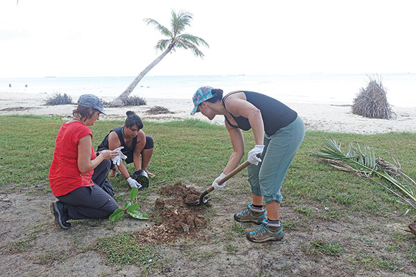 Scientists participating in the 3rd Annual Marianas Terrestrial Conservation Conference & Workshop join the Micronesia Islands Nature Alliance’s “Bring Back Our Trees” campaign via a tree planting activity at Micro Beach last week. (IVA MAURIN)