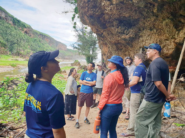 Bureau of Environmental and Coastal Quality staff talk to the scientists about beach water quality during their tour of the Jeffrey Beach, as part of the 3rd Annual Marianas Terrestrial Conservation Conference & Workshop last week. (OLIVIA TENORIO)