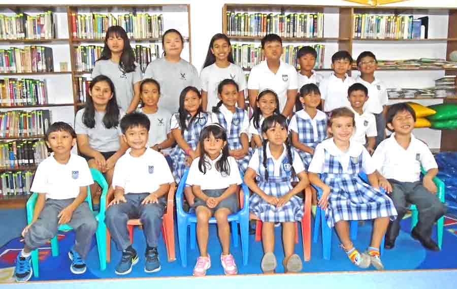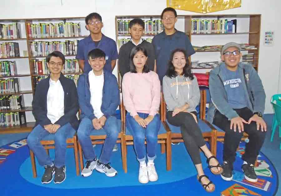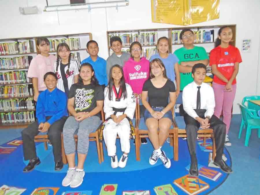 The 2018 NJSDA winners of Grace Christian Academy have their picture taken at the Rev. Raymond S. Kinsella Library Saipan campus. (Contributed Photo)