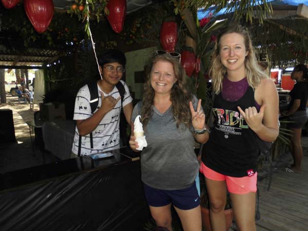 From right, Deenalih Crook, Amanda Haas, and a Tinian resident enjoy the 2018 Tinian Hot Pepper Festival on Feb. 18, 2018, at Tachogna Beach. The festival was held on Feb. 17-.18, 2018, in honor of donni sali, the island’s famous hot pepper. (Photos by MVA)