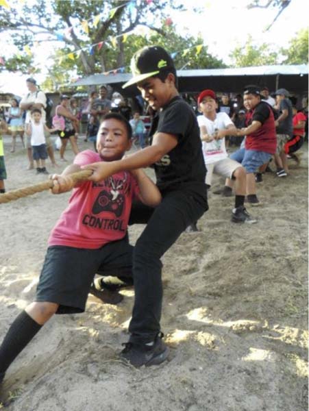 An outrigger canoe race pitted four teams against each other in the warm, turquoise water of Tachogna Beach. Pika Punket Pie was making good time until the canoe capsized when rounding the turn buoy. With the Department of Public Safety Boating Safety Division also nearby, Tinian Sen. Jude Hofschneider mounted a rescue party in a spare canoe when Pika Punket Pie filled with water due to a faulty plug and could not be flipped upright to finish the race. Despite this unfortunate “turn” of events, the Pika Punket Pie crew cheered on the other teams from shore, with last year’s winner JC Café Team eventually recapturing their title.