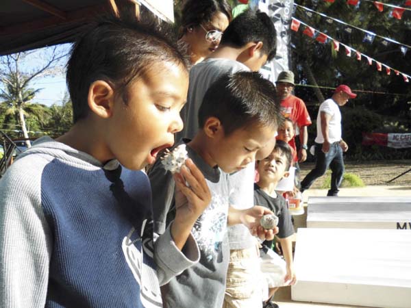 For the children, a large but late-starting crab won Anita Cameron top place in the umang (hermit crab) race for girls, while Branden Cepeda’s entry won the boys’ race. A co-ed sack race saw boys and girls jumping—in one case, tumbling—their way to the finish line.