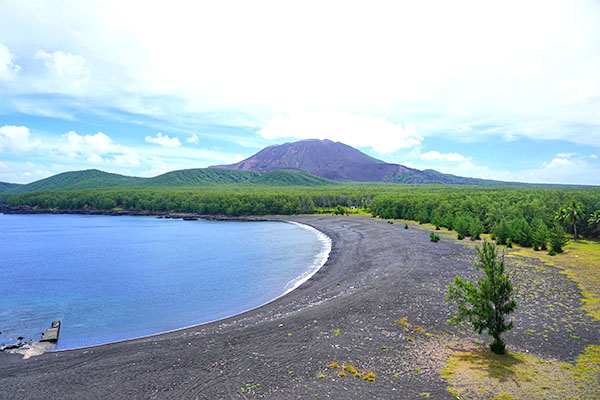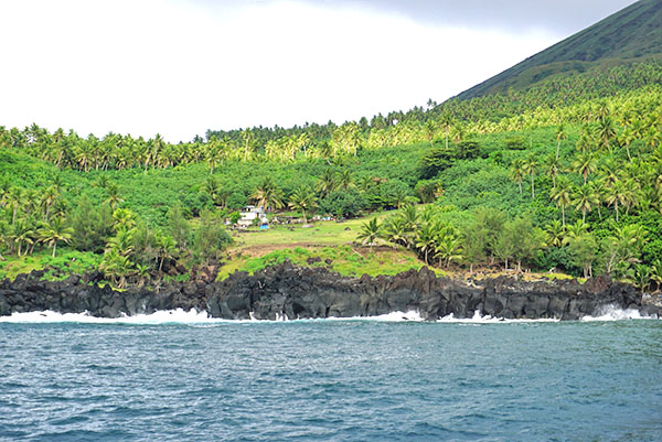 The dock on Pagan built by the Japanese during World War II overlooking the volcano in the north side.
