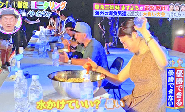 The two-hour “Human Observation Variety: Monitoring” aired last July 11 night at 8pm on TBS (Tokyo Broadcasting Station) and featured over 20 minutes on Saipan. The variety show observes the reaction of people to the unexpected. The program followed “Big Eater Three Sisters”—three women taking on strong men around the world in eating contests. The Marianas segment highlighted professional food fighter Sachiyo Masubuchi competing in the J’s Fried Rice Eating Competition held as part of the Taste of The Marianas International Food Festival & Beer Garden in May 2019. The three “sisters” also challenged a local diving guide to finish a 9-lb steak in less than an hour at Country House Restaurant.