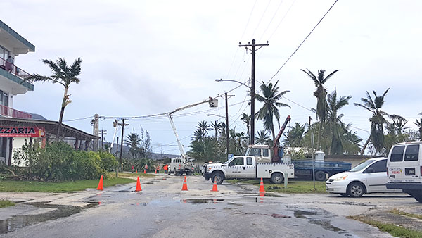 Linemen of the Commonwealth Utilities Corp. begin restoring power on Rota soon after Typhoon Mangkhut hit the island. (Kimberly A. Bautista)