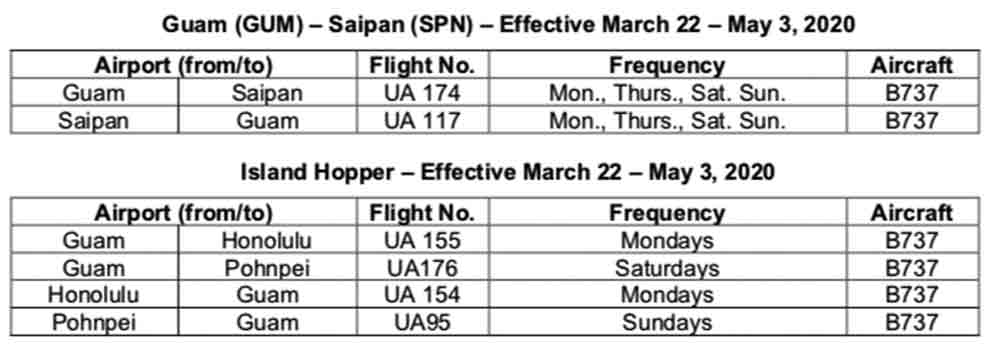 GUAM—United Airlines announced that it will be making further adjustments to its Guam flight schedules due to the recent government mandates designed to quell the COVID-19 outbreak on the island. The adjusted schedule will be effective beginning March 22 and will remain in place through May 3.