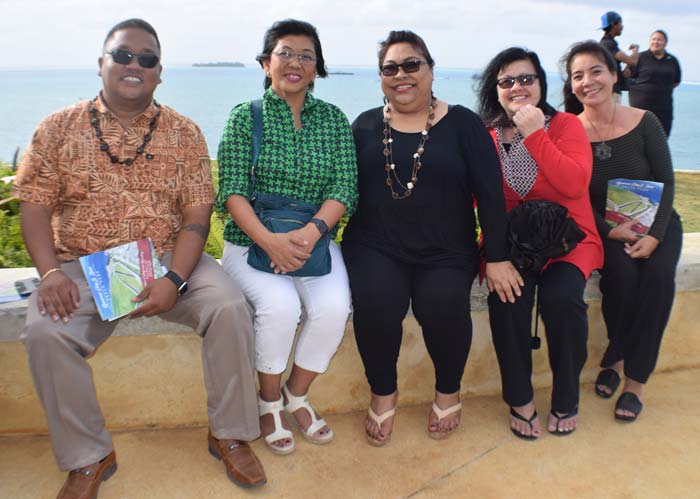 From left, Rep. Angel A. Demapan, IT&E manager Rose Soledad, CNMI Board of Education vice chair Janice Tenorio, Northern Marianas College president Carmen Fernandez, and Office of the Governor senior policy adviser Glenna SP Reyes were part of the crowd that witnessed last Friday’s ceremony. (Jon Perez)