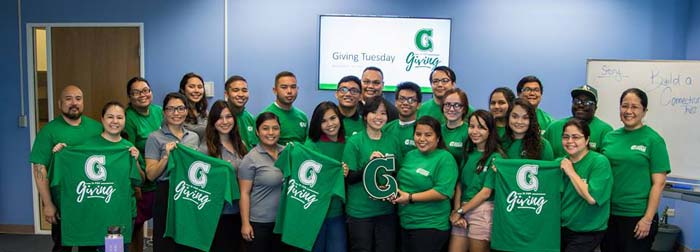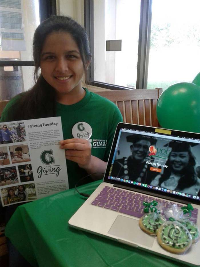 For the G is for Giving campaign, the Bank of Guam marketing team conducted a training workshop attended by students who later set up donation collection tables on Giving Tuesday. From Giving Tuesday until Dec. 31, donations were collected on the UOG Endowment Foundation website, www.supportuog.org, through the mail and in person, using “UOG Green” envelopes specifically ordered for the month.