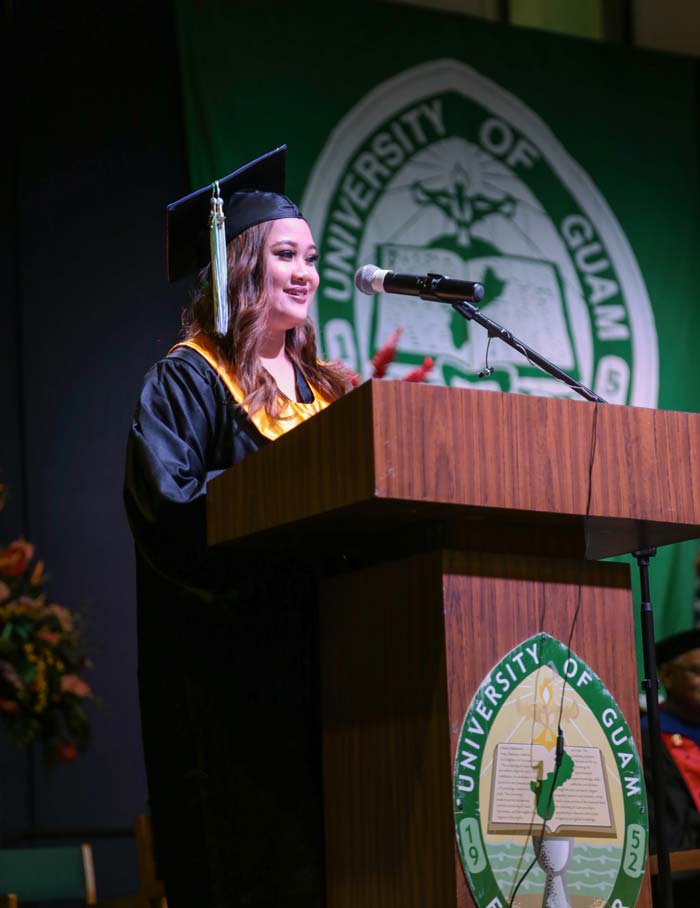 In his welcoming remarks, UOG president Robert Underwood shared examples of UOG alumni making a difference in the world, and reminded the graduates of attitudes and values that the university passed on to them: “responsibility, commitment and problem-solving.”