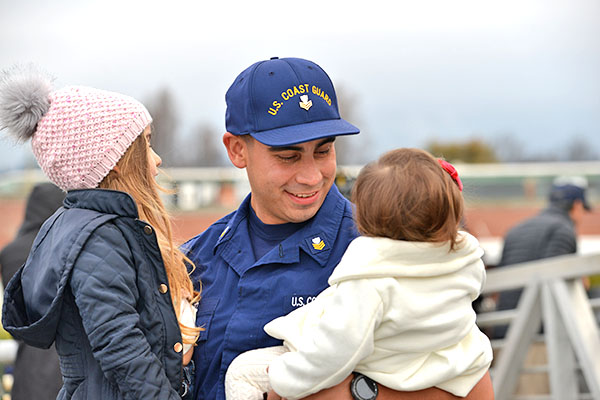 Friends and family members of U.S. Coast Guard cutter Munro crewmembers await the cutter’s return home to Coast Guard Island in Alameda, Calif., following the cutter’s 105-day, 17,000-nautical mile, multi-mission deployment to the Western Pacific Ocean, Dec. 24, 2018. (Petty Officer 1st Class Matthew S. Masaschi)